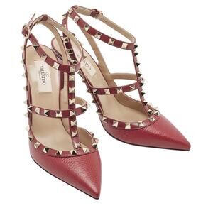 Valentino Garavani NIB Rockstud Red Leather Ankle Strap Caged Heels Pumps 39