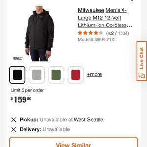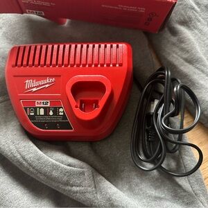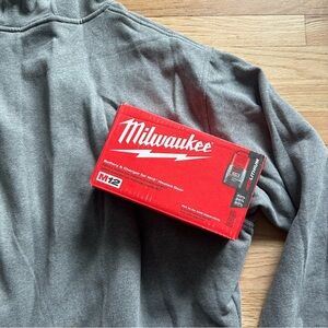 Lightly used, open box. Milwaukee gray zip-up hoodie with a charger included (battery not included). Works great, very comfortable!