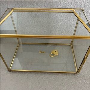 Elegant Gold Glass Gift Card Box with slot and heart and key lock. Comes with a Guest Book. Perfect for any occasion.