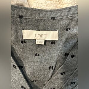 LOFT Charcoal Long Sleeve Shirt Dress with Dots