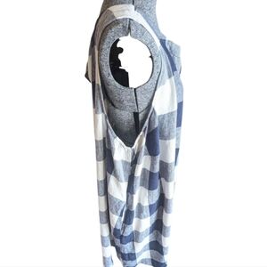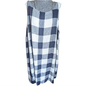 This is a beautiful and comfortable Ava & Viv plus-size dress in a classic navy and white gingham check pattern. It's a sleeveless style with a loose, relaxed fit, making it perfect for warmer weather or paired with tall boots, leggings, and a mock turtleneck for cooler weather!The neckline features a small keyhole opening with a single button closure for a unique touch.