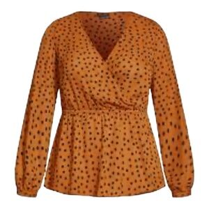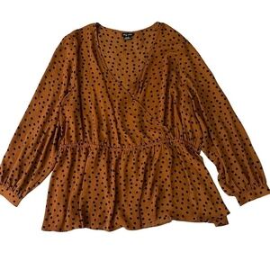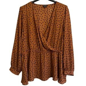 City Chic Women's Size XXL/24 Dotty Caramel and Black Wrap Top