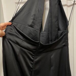 Party, formal, festivities, functions, events, stylish, modern, flowy, comfortable, open back, deep V, halter, celebration, lined, palazzo pant, jumper, romper, jumpsuit, one piece, wedding guest, New Year’s Eve