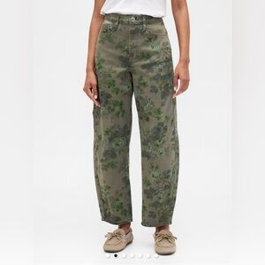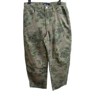 Gap High Rise Print Barrel Jeans in Green Floral Size 30S. NWT