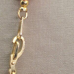 The vintage pink and gold acrylic graduated beaded necklace is a charming piece that exudes a timeless elegance. Measuring 22 inches in length, this necklace features a beautiful combination of pink and gold acrylic beads in a graduated design, creating a sophisticated and eye-catching look. The piece is marked with "Pat," adding a hint of intrigue to its vintage appeal. Perfect for any occasion, this necklace is a versatile accessory that can effortlessly elevate any outfit with its unique and stylish design.