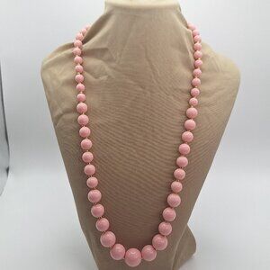 Vintage Pink And Gold Acrylic Graduated Beaded Necklace 22" Marked Pat