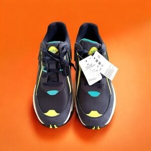 The adidas Men’s Navy Yung-96 Chasm With Neon Accents Sneakers US 10.5
