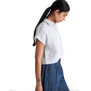 Madewell Striped Dolman Cropped Collared Button Up Shirt