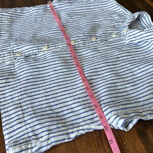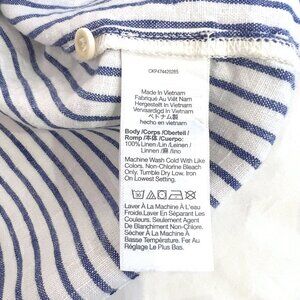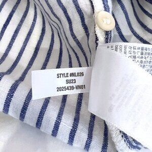 Crafted of 100 percent striped linen, this cropped button-up shirt has a point collar and short dolman sleeves. Relaxed yet elevated, it's made to wear everywhere from the office to weekend brunch.