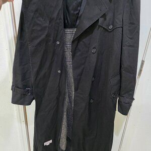 Christian Dior Trench Coat Black 42L Vintage Designer Long Double-Breasted