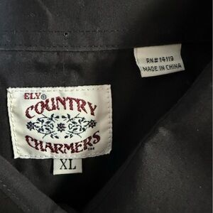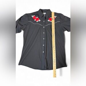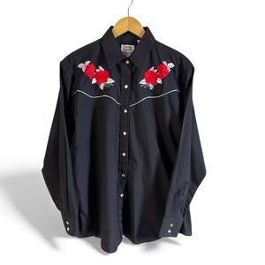 Ely Country Charmers Western Snap Shirt XL Black Red Rose Embroidered