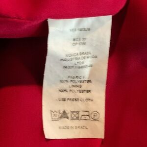 Bold pink midi dress with a deep V-neck and ruffle detail. Perfect for making a statement.
