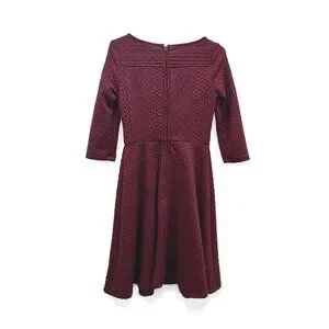 Modcloth Burgundy Cable Knit Dress Size Small, 3/4 sleeve
