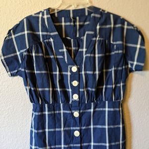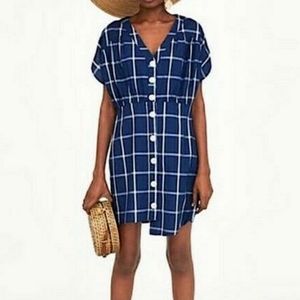 ZARA TRF Mini Dress Short Sleeve Blue Plaid Button Up TRF Collection Sz. S
