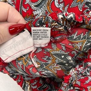 Elegant red skirt with a detailed paisley design. Perfect for versatile styling.