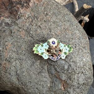 Elegant floral brooch featuring vibrant green leaves and blue flowers. Perfect for adding a touch of nature-inspired beauty to any outfit.