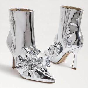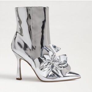 SAM EDELMAN $200 Esmae Stiletto Ankle Metallic Bootie Floral Detail Size 7.5 NEW