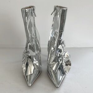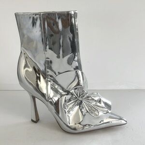 Step out in style with these stunning silver ankle boots. Featuring a unique floral detail, these boots are perfect for making a statement. Ideal for any occasion, they add a touch of elegance to your outfit.