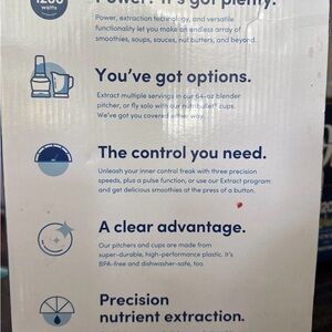 1200 watts of power easily breaks down foods into smoothies, soups, sauces and more
