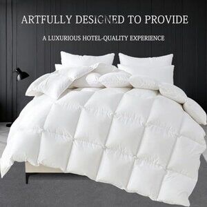 New Full White Luxurious Goose Feather Down Fiber Comforter, All Season Hotel