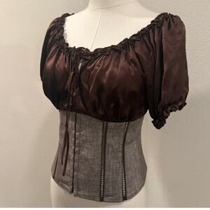 Vintage Bebe Corset Top Silk Milkmaid Chocolate Brown Y2K Coquette Cottagecore 6