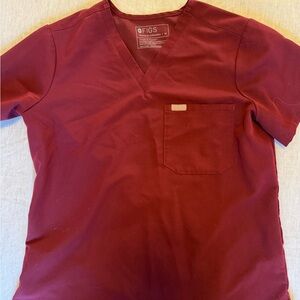 Like new scrubs by Figs - Maternity scrubs set: Zamora Maternity Jogger Scrub Pants size Small + Catarina One-Pocket Scrub Top size Medium (regular cut) in Burgundy color