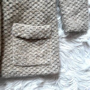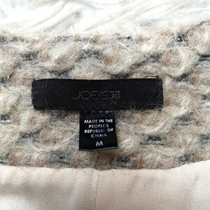Excellent preowned condition. Joes Tweed Wool Mohair Coat Jacket. Large chunky textured tweed pattern. Tan, beige, gray colors. Perfect to pair with grays or camel tan color outfits. Warm. Wool, mohair blended. Lined with blush colors fabric. Collarless. Medium weight. Pockets in front. Hook closure. Long to mid length. Loose relaxed fit. Love the vintage style of this. Would look cute with a hoodie underneath for casual look or over a dress for dressed up days!