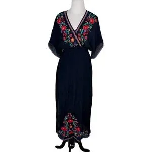 Umgee Black Embroidered Boho Midi Dress – Size M