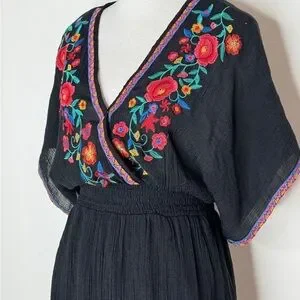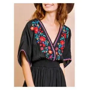 This piece channels effortless boho-chic vibes—perfect for festivals, vacations, or casual summer days. The embroidery pops against the black fabric and gives major Anthropologie or Free People energy at a fraction of the cost.