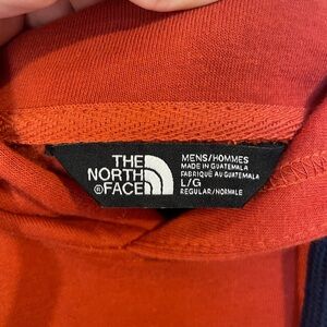 Brick red/rust orange & navy color way, oversized, cozy, cotton blend, pockets, drawstring, hood, camping, outdoors, adventure