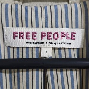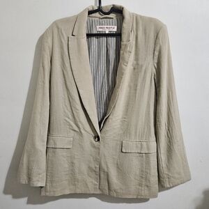 Free People Linen Blend Blazer Tan Beige Striped Lining Size S Coastal Grandma