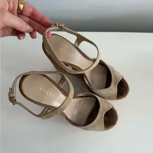 Gucci Women's Beige and Brown Wedge Sandals