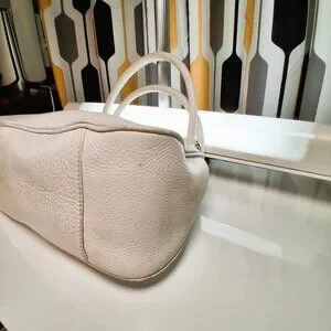 Vintage Prada Hobo Handbag Pebbled White Leather Medium Size