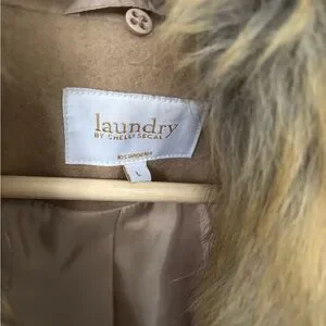 Laundry Camel Wool Blend long coat w/ detachable faux fur collar Sz Large