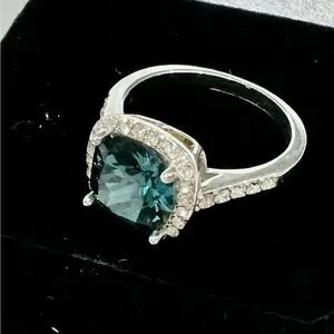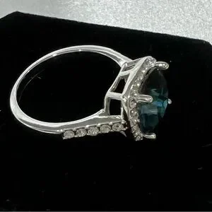 SWAROVSKI ELEMENTS AQUAMARINE & CLEAR CRYSTAL Silver Women's Ring sz 9