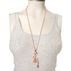 BETSEY JOHNSON bling statement chain Guitar crystal pearl necklace rose gold NEW