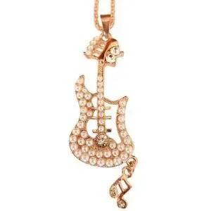 BETSEY JOHNSON bling statement chain Guitar crystal pearl necklace