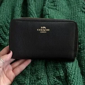 Coach Black Leather Zip Wallet