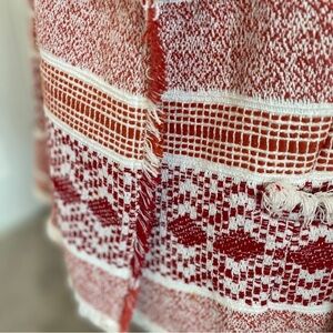 Color: Red and off white patterned