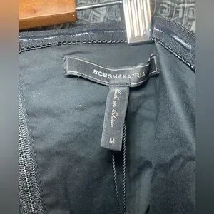 BCBGMaxAzria Black Faux Leather Top with Embellished Belt