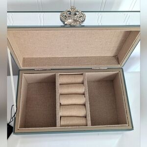 jewelry box glass mirror beveled mirrored designer crown royal royalty silver black princess queen reflective neutral tan necklace earrings rings bracelets brooches pins glam ships quickly gift ready for her