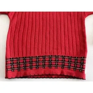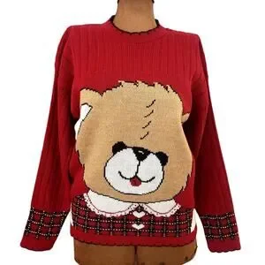 Arielle Vintage Teddy Bear Face Sweater in Red in Women's Size Small. There is no size on the garment tag. I am guessing that it is a medium. Please see the measurements to see if this sweater will work for you.