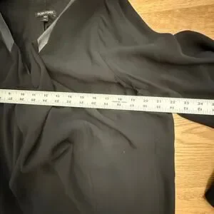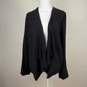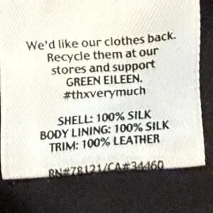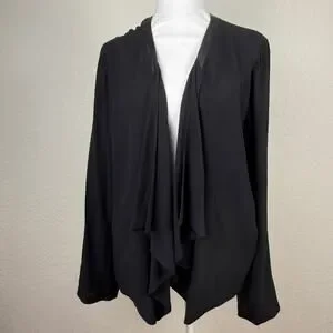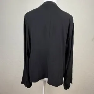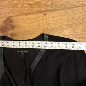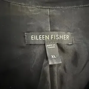 Eileen Fisher 100% Silk Crepe Leather Trim Jacket Black Button Sleeve Women’s XL