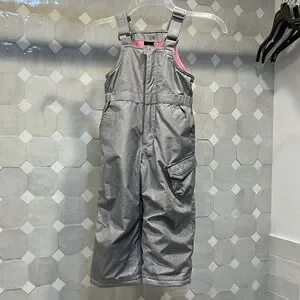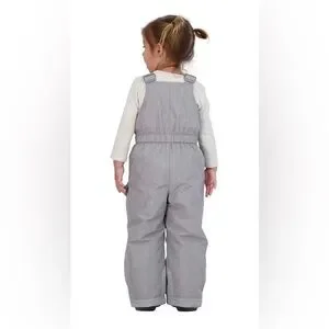 Stylish gray overall snow suit bibs for kids. Comfortable and durable. Perfect for snow winter playtime.