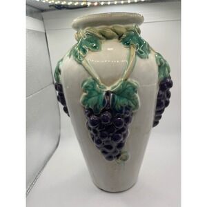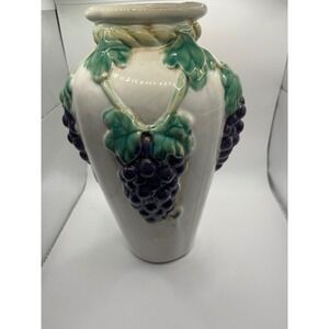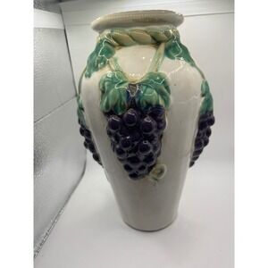 Keywords: ceramic vase, grape decor, wine country, Mediterranean, Tuscan, fruit motif, table centerpiece, shelf decor, floral arrangement holder, kitchen decor, dining room, hearth and home, statement piece