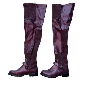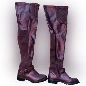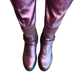 Elegant plum boots with a sleek design. Perfect for elevating your style. Top of the boots to top of the soles: 26.25”