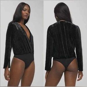Good American velvet long sleeve wrap bodysuit in black size Good American 1 or X Small/Small.