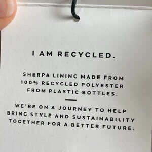 Features: pull on, sherpa lined, knit, pattern, made from 100% Recycled Polyester from plastic bottles, acrylic, nylon, cozy, comfy, outdoor, winter
