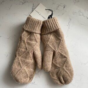 Indigo Love & Lore Outdoor Sherpa Lined Knit Recycled Polyester Mittens Tan OS