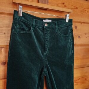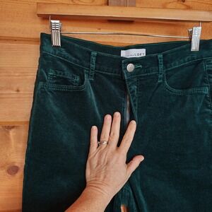 LOFT Curvy Velvet Skinny Pants Dark Green Ankle Trousers Stretch Sz 4(30") x 28"